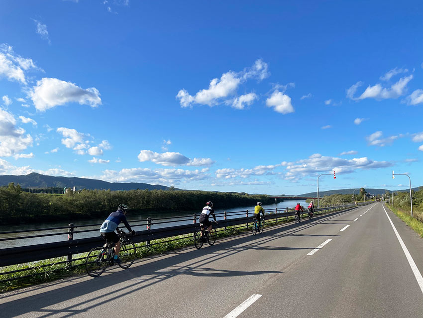 大雪山連峰が浮かび上がって見える道、どこまでも真っ直ぐな道、川と平行して走る道、大きな空が広がる道、風と戦う道・・・。もくもくと漕ぎつづける中で、地元の「人」との触れあいを楽しみ、地域の美味しい「食」に出会う。